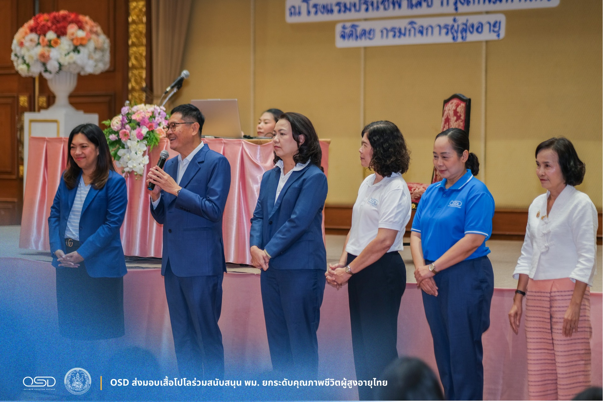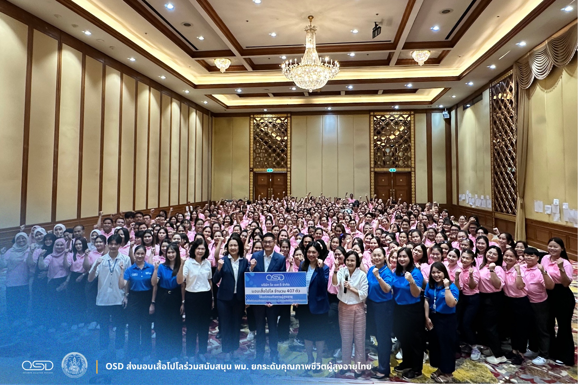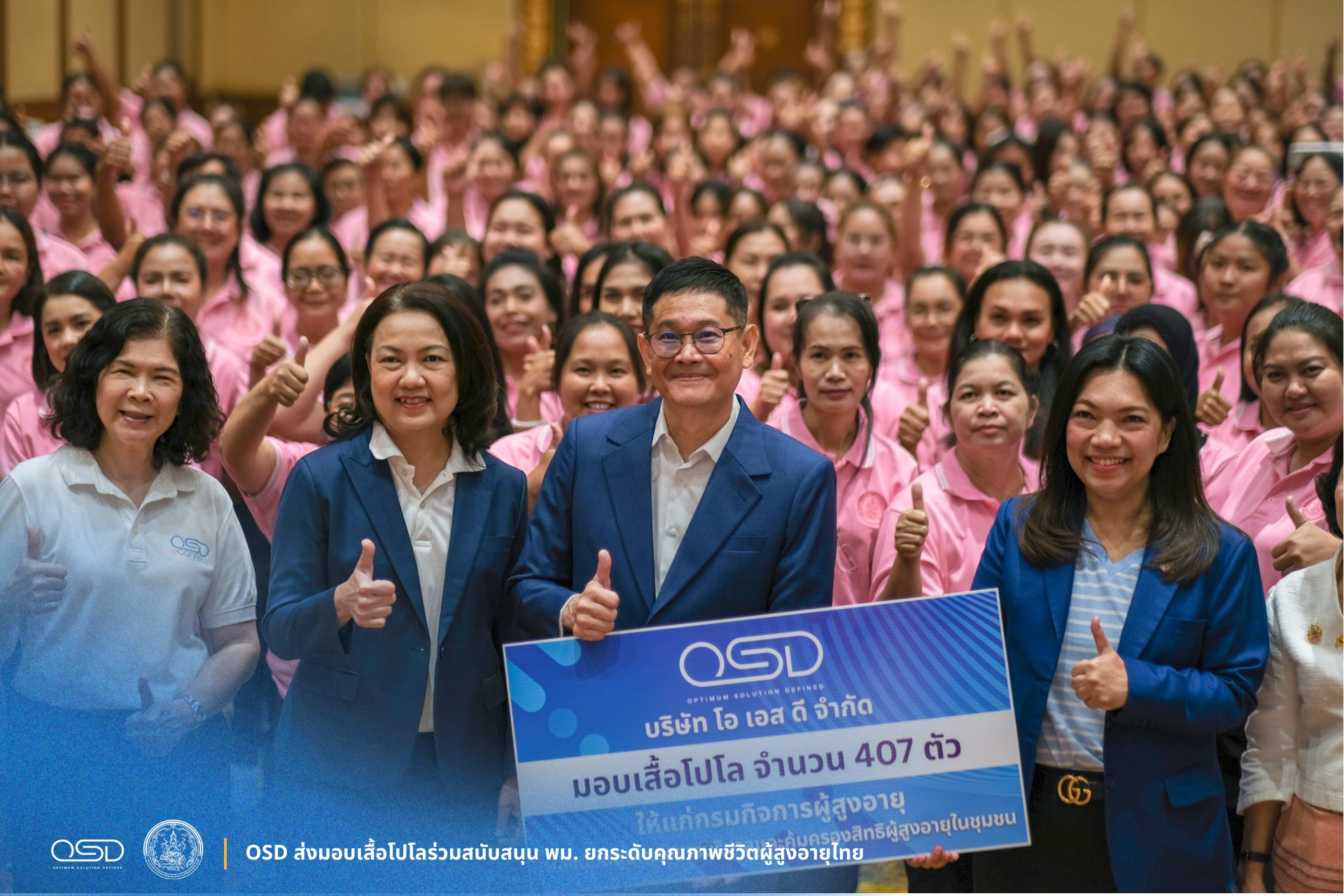 เมื่อวันอังคารที่ 16 กันยายน 2568 บริษัท โอ เอส ดี จำกัด (OSD) ได้ส่งมอบเสื้อโปโลจำนวน 407 ตัว ให้แก่กรมกิจการผู้สูงอายุ เพื่อร่วมสนับสนุน “โครงการบริบาลและคุ้มครองสิทธิผู้สูงอายุในชุมชน” ของกระทรวงการพัฒนาสังคมและความมั่นคงของมนุษย์ (พม.) ณ โรงแรมปริ๊น พาเลซ